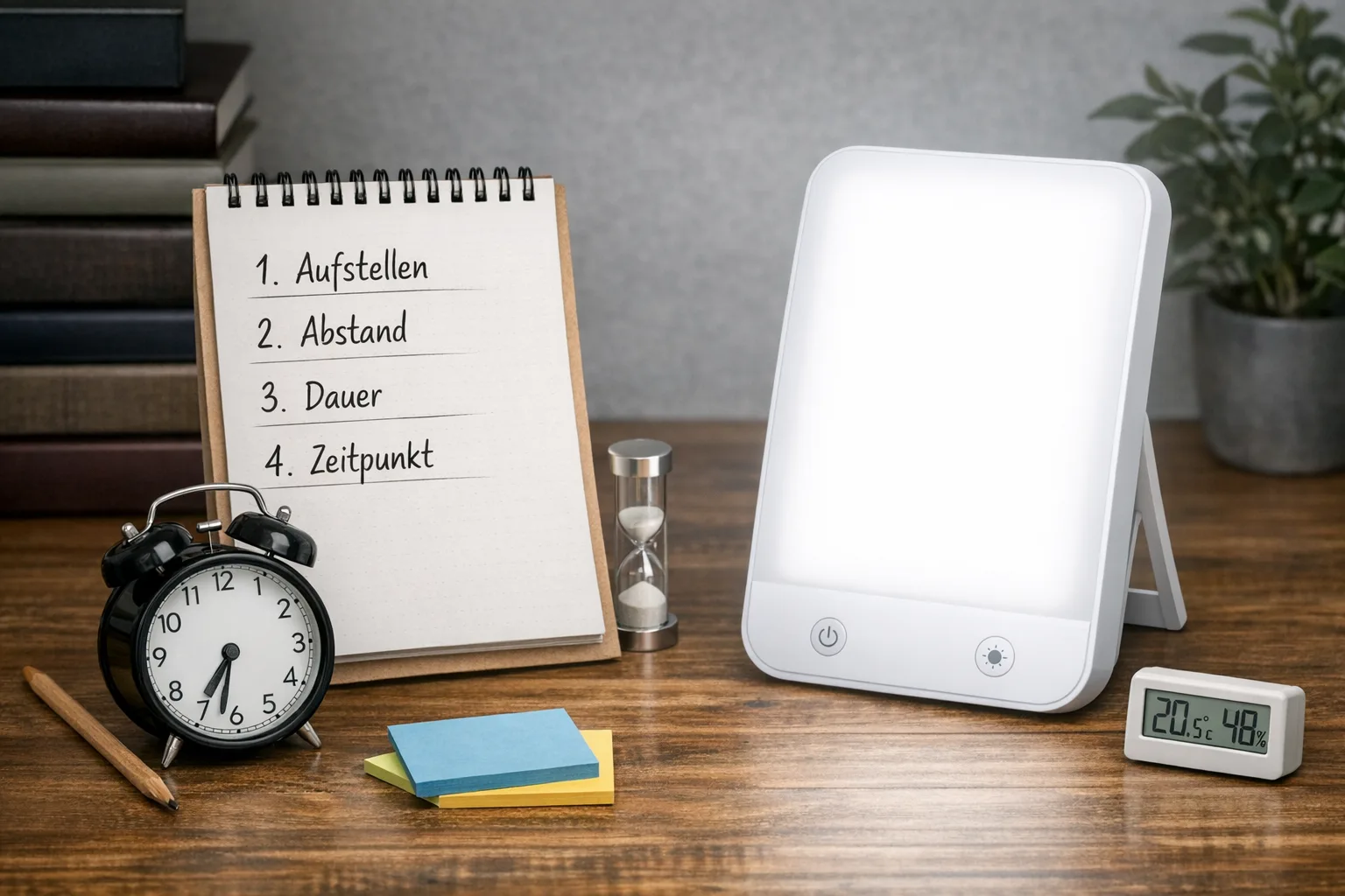 Kurz zusammengefasst. Wähle den Typ nach deinem Alltag. Wenn du kurze Morgen-Sessions willst, sind Panels sinnvoll. Wenn du am Schreibtisch viel Zeit verbringst, reicht oft eine kompakte Lampe. Achte auf Lux, Farbtemperatur und Komfort. Im nächsten Abschnitt zeigen wir dir, wie du Abstand und Dauer praktisch einstellst.